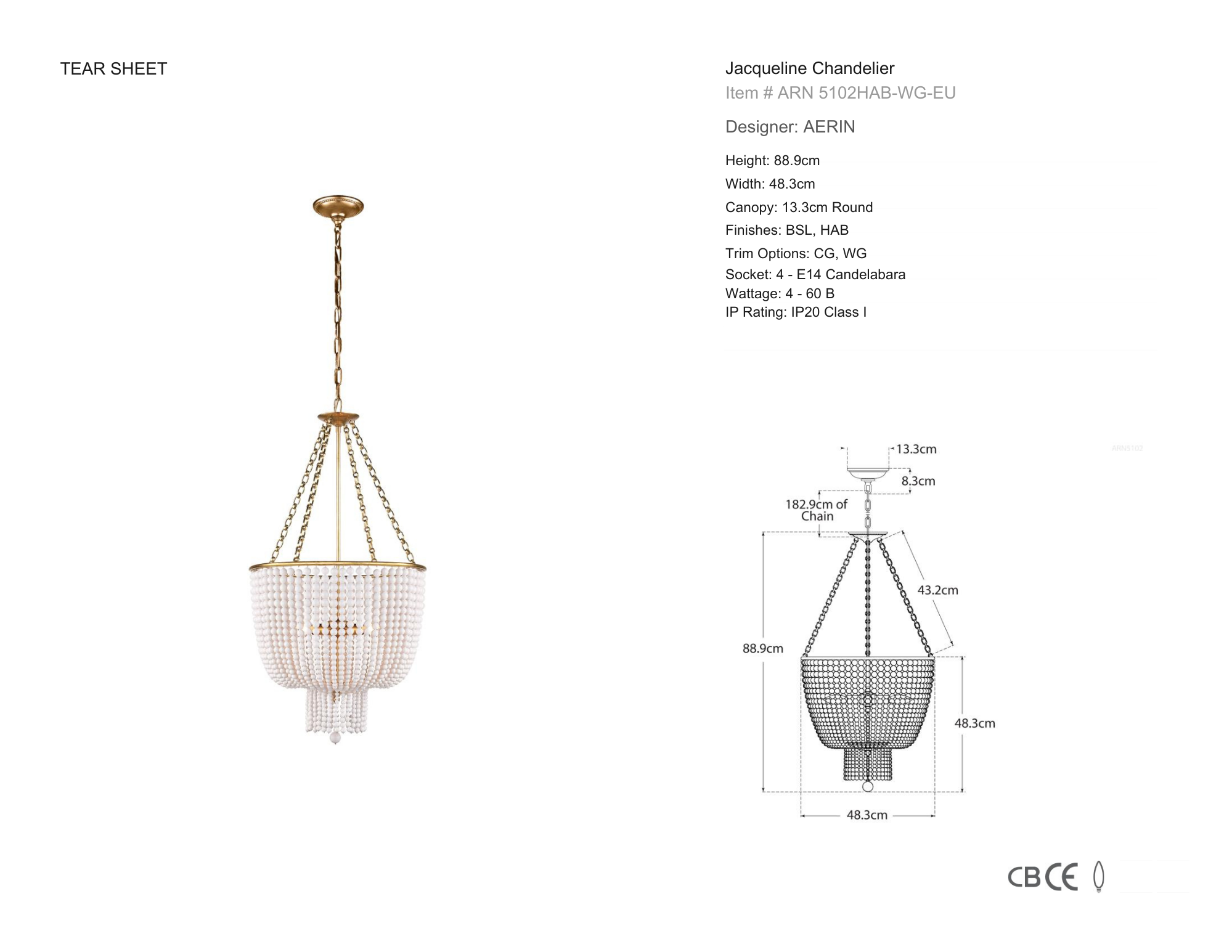 Aerin AERIN - Jacqueline Chandelier in Hand-Rubbed Antique Brass - White Acrylic