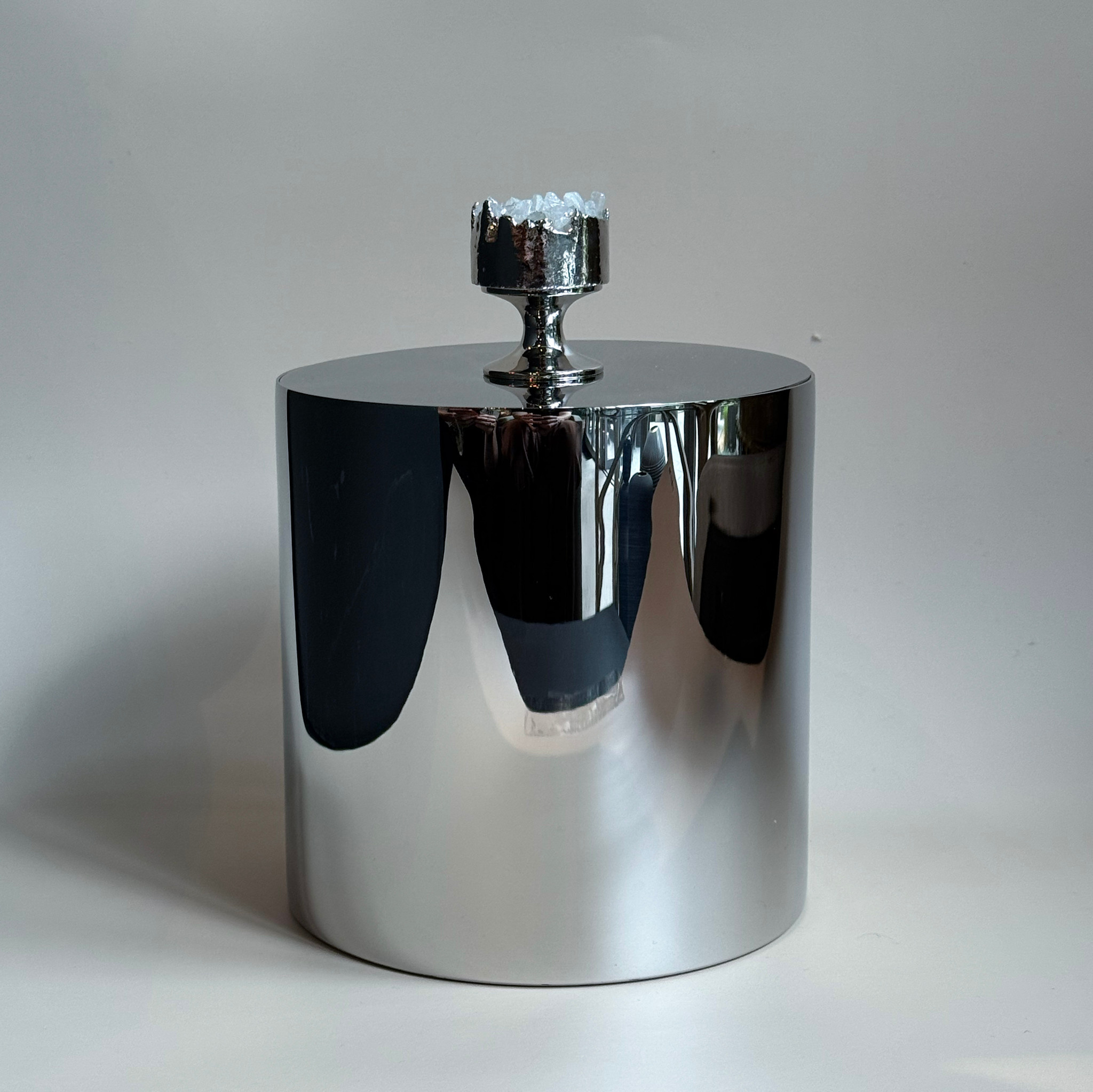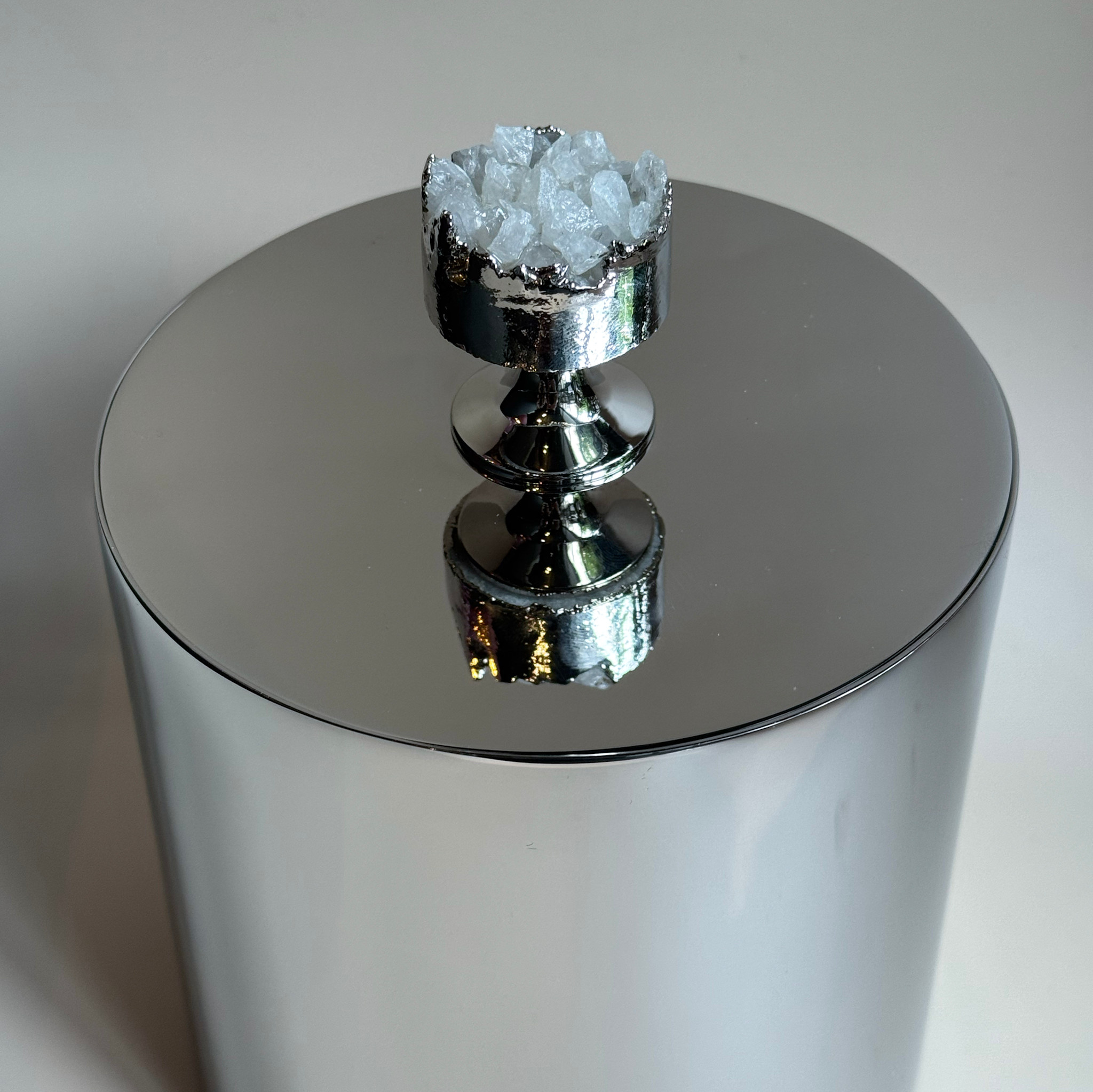Our Gemstone Hospitality Ice Bucket is designed to keep your bar stylish and your drinks cool. Topped by a pure silver-plated natural crystal quartz, each ice bucket is unique. We designed it as the ideal combination of luxury and practicality, and obsessed over every detail - from its stainless steel double-walled construction (to ensure that your ice doesn't melt), to the exact proportions of the ice bucket (not too big, not too small, fits perfectly on your bar). Cheers!