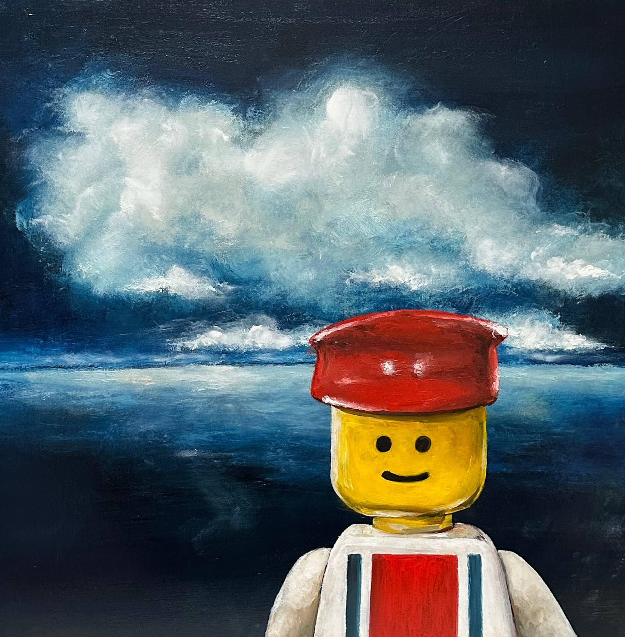 This figure, initially playful, transforms into a quiet protagonist in a much larger story. A story that examines the fragments of our own childhoods. The Lego man becomes both a stand-in and a stand-out. A question mark in plastic form. Through his ever-smiling face and fixed gaze, we’re prompted to ask "is he a mere bystander to the innocence of youth, or was he a silent witness to the moments that shaped us? Is he complicit in our decisions, or oblivious to them?"