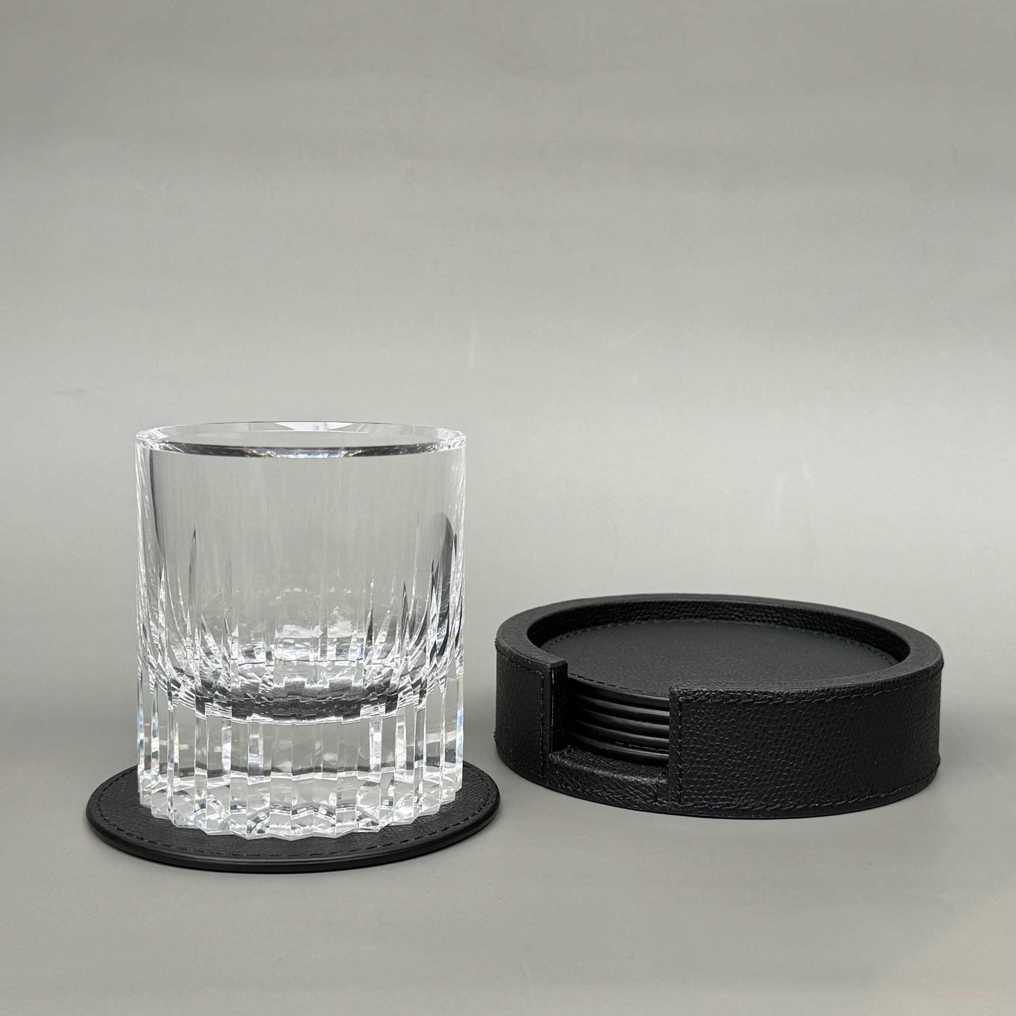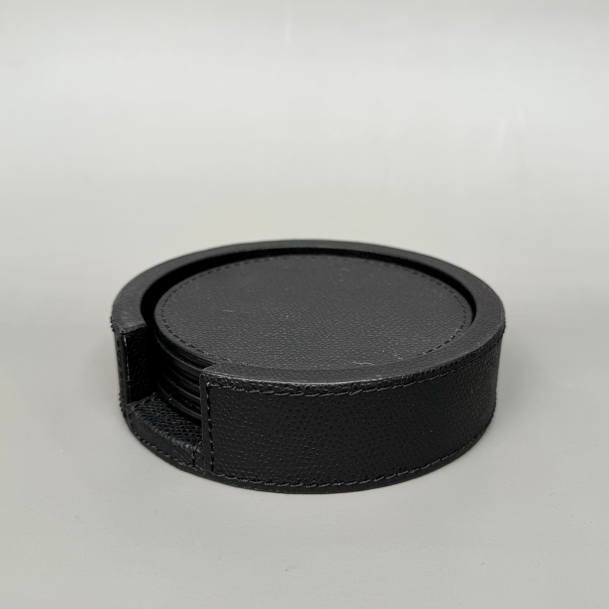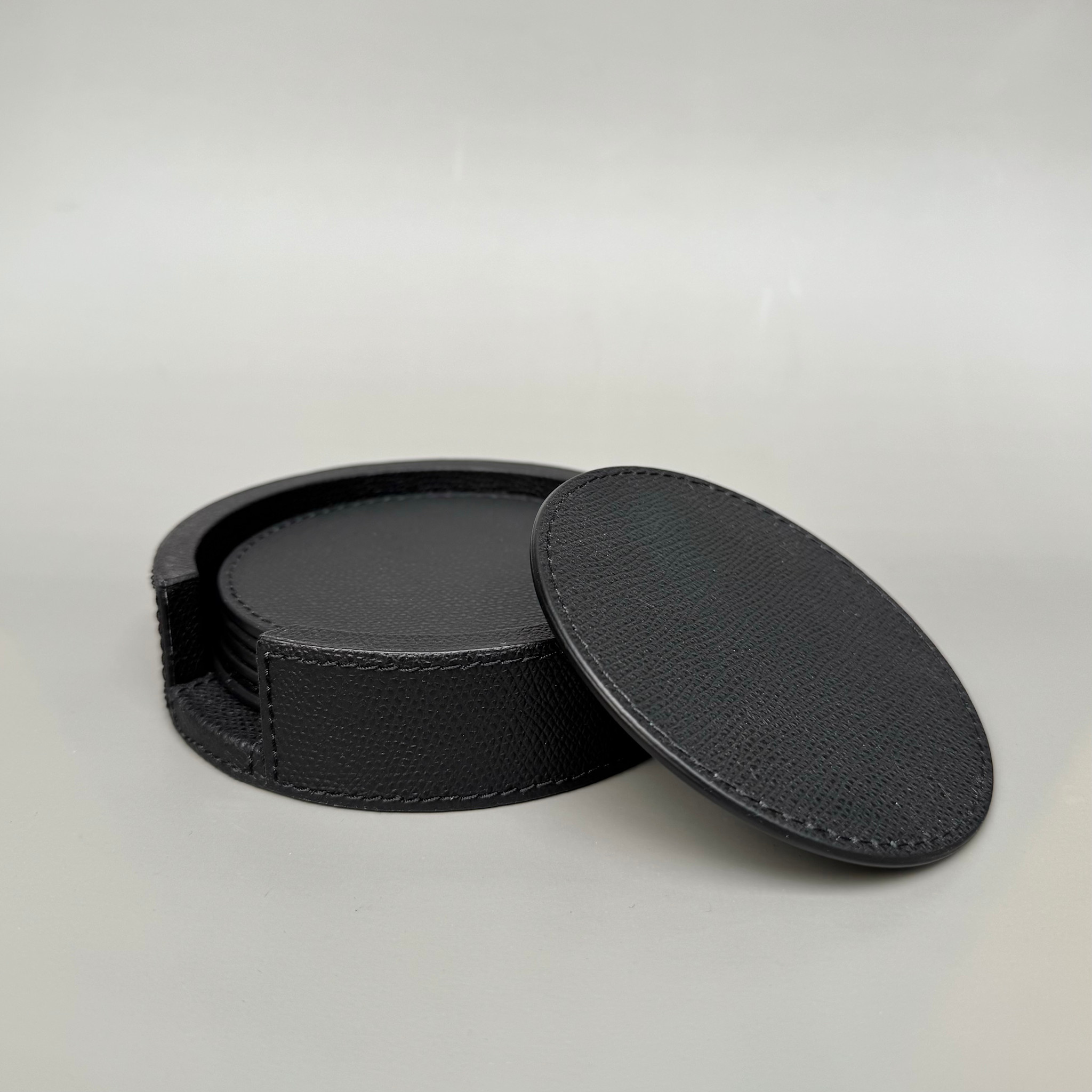 Giobagnara Giobagnara - Round Tao Coasters Set of 6 with Holder - Black Printed Calfskin Leather - Italy
