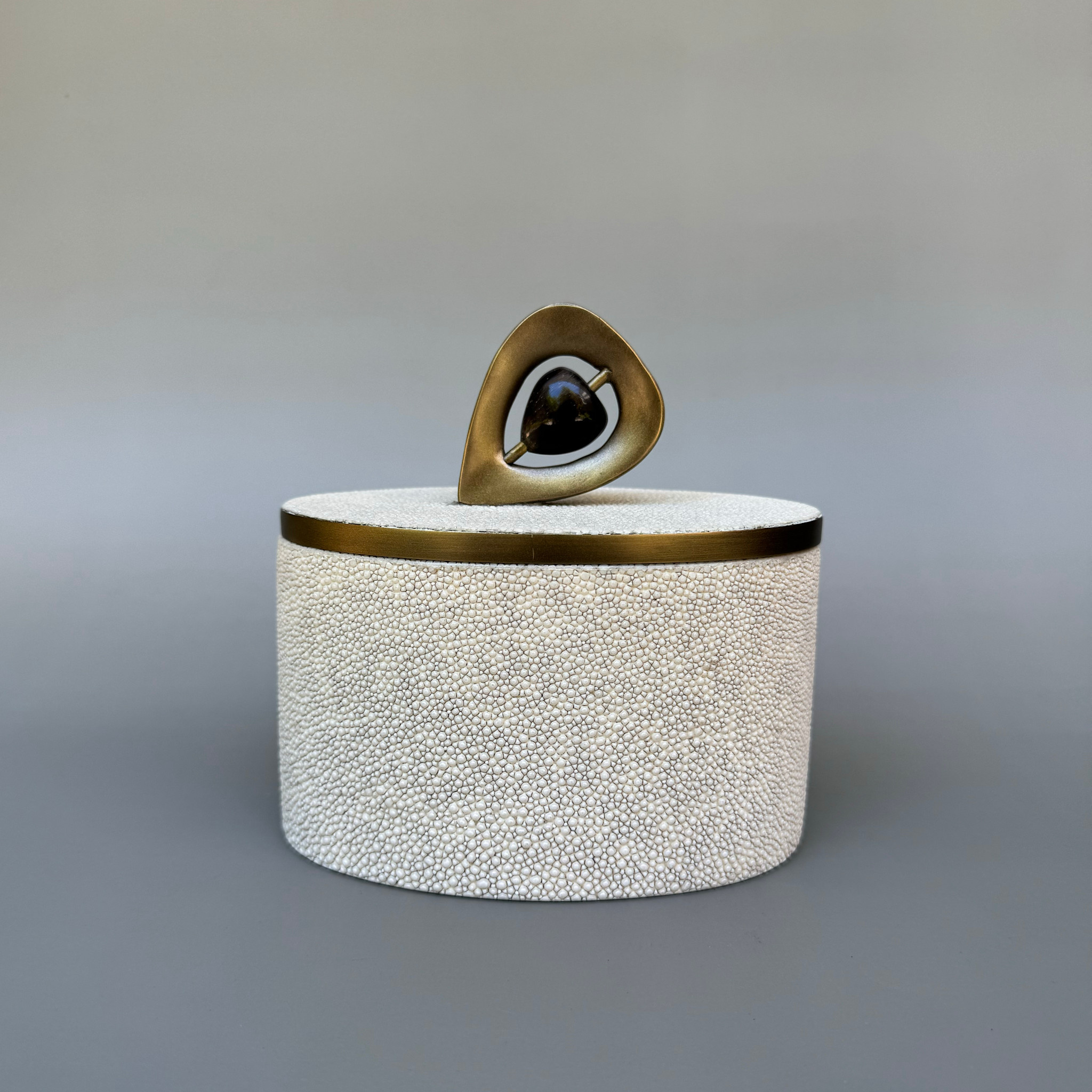 KIFU Kifu Paris - Pedestal Knob Box - Medium Round - Antique Natural Shagreen with Bronze-Patina Brass Knob