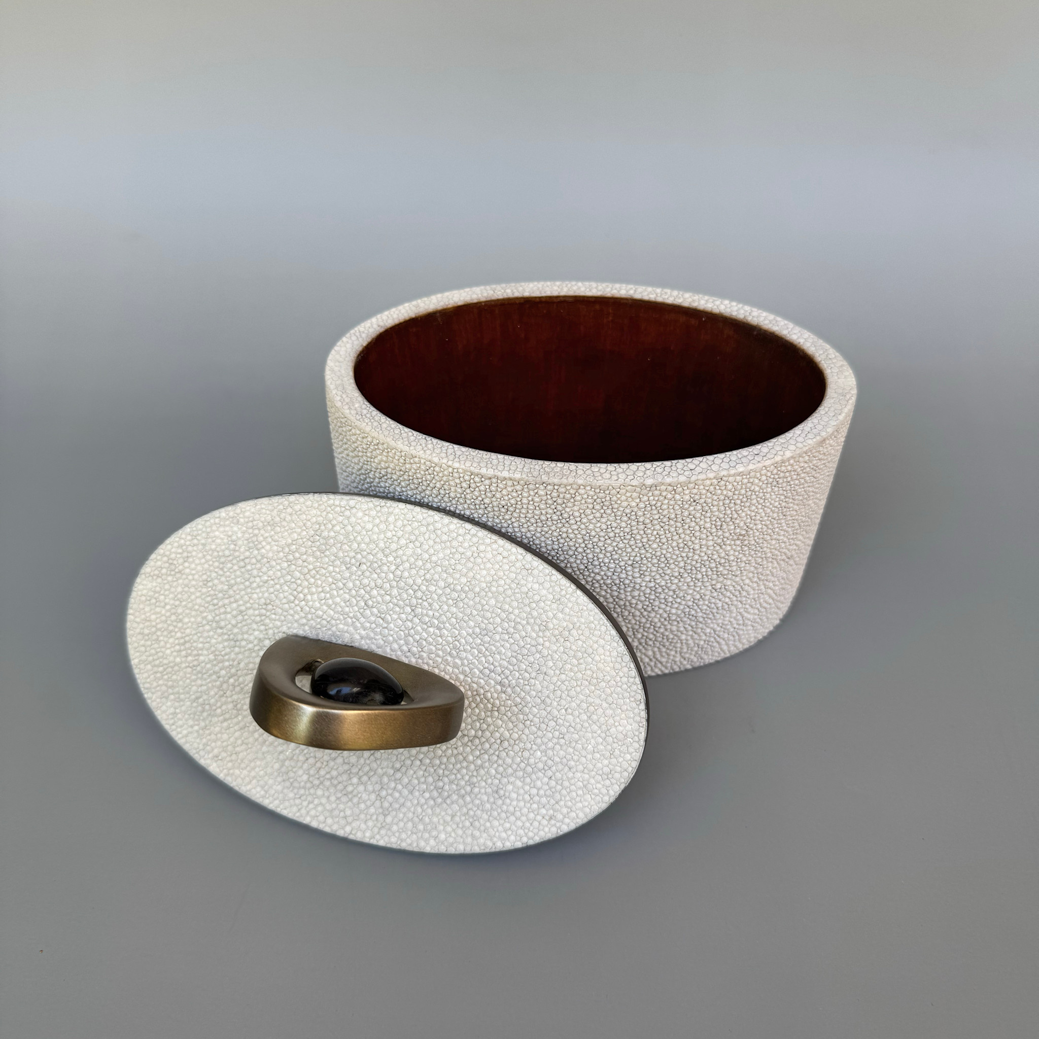 KIFU Kifu Paris - Pedestal Knob Box - Small Round Cream Shagreen with Bronze Patina Knob