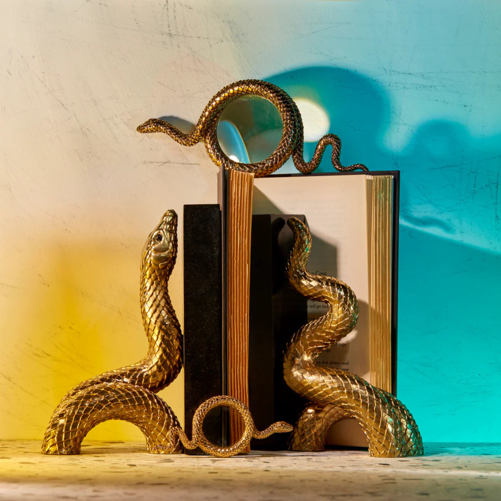 L'Objet L'Objet - Snake Gold Bookends - 24K Gold Plated Brass on Marble Base